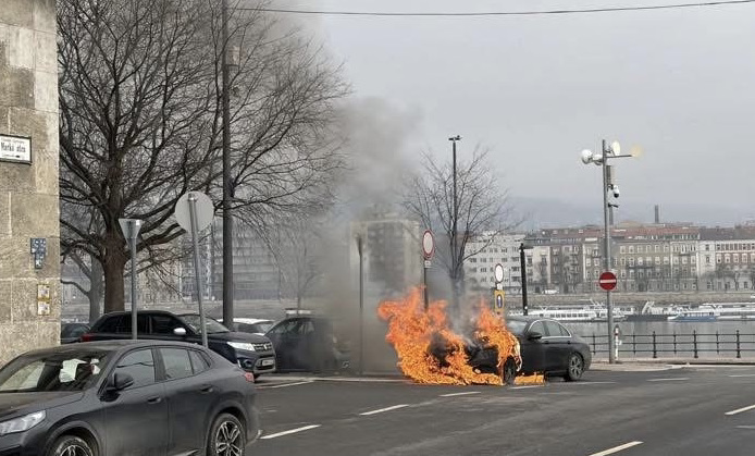 Ritka látvány törte meg a szürke hétköznapokat Budapesten a Markó utcában. Hatalmas lángokkal égett egy luxus Merci, meg a mellett álló autók. A kár jelentős.