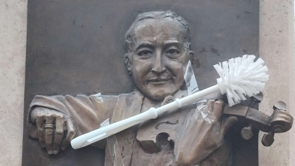 A bejegyzésben közzétett képeken látható, hogy a párt Berki László, Farkas Gyula, Bobe Gáspár Ernő, Ökrös Oszkár és Cziffra György VIII. kerületben látható szobrának kezébe is vécékefét ragasztott.