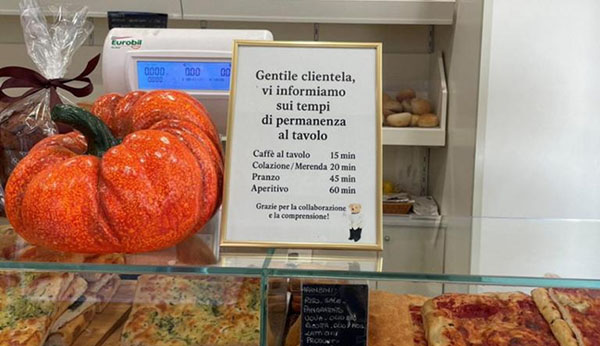 Az olasz Corriere della Sera hírportál szerint a lánc mindhárom éttermében mostantól táblák jelzik az asztalok használatának pontos időtartamát. A szabályok egyértelműek: 15 perc kávéra, 20 perc reggelire vagy harapnivalóra, 45 perc ebédre és egy óra aperitifre.