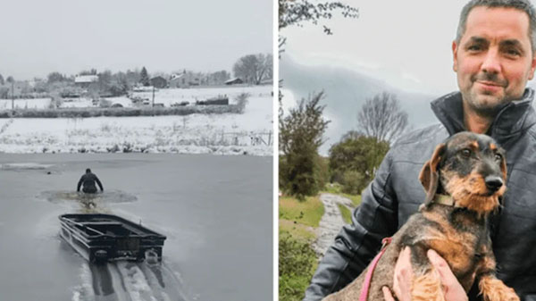 A L'Avenir beszámolója szerint Bruno Dal Molin, a belgiumi Modave polgármestere a jeges vízbe ugrott, hogy megmentse tacskóját, Bettyt, és kis híján életét vesztette.