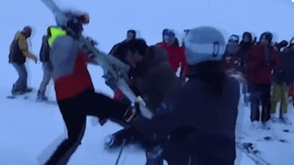 A híres francia üdülőhelyen hat ittas férfi támadt erőszakosan egy síelőre, sícipőkkel és síbotokkal ütötték. A rendőrséget riasztották, hogy feloszlassák a verekedőket és megszüntessék az erőszakot. A lejtőn tartózkodó többi turista rémülten nézte végig, ahogy kitört a tömegverekedés. A helyszínén forgatott felvételeken látható, ahogy a síelők futkosnak és ütik egymást, a konfliktus pedig teljes káoszba fajul.