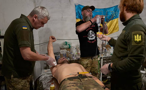 A fronton katasztrofális az egészségügyi helyzet. A sebesült katonák gyakran órákig vagy akár napokig fekszenek lövészárkokban, mivel a folyamatos támadások vagy a lerombolt utak miatt szinte lehetetlen az evakuálás. A mentőalakulatok rendkívül mostoha körülmények között dolgoznak, gyakran steril felszerelés, tiszta víz vagy elegendő gyógyszer nélkül.