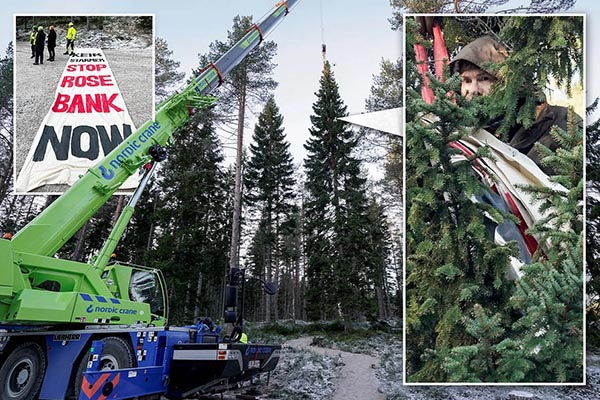 Klímavédelmi csoport tüntetői gyűltek össze, hogy tiltakozzanak a Shetland-szigetek partjainál található Rosebank gázmező olajkitermelésének tervei ellen. A Kihalás Lázadás aktivistája felmászott a Trafalgar térre szánt 20 méteres lucfenyőre, és hozzákötözte magát a törzséhez, hogy megakadályozza annak kivágását.
