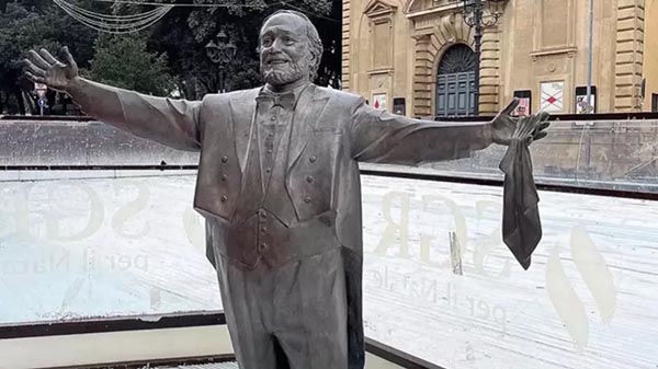 A híres tenor, Luciano Pavarotti pesarói szobra a vita középpontjába került, miután a helyi hatóságok jégpályát építettek köré. A döntés felháborította Pavarotti özvegyét és a helyieket egyaránt.