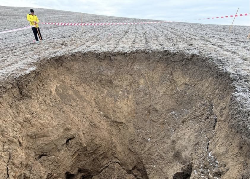 A Nool vármegyei hírportál által közölt fotókon az látható, hogy egy szántóföld közepén keletkezett a hatalmas és egyben rémisztő lyuk.
