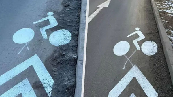 A kerékpársáv-szimbólumokat anélkül helyezték el, hogy előzőleg megtisztították volna az utakat, így közvetlenül a fagyott hóra festettek. A bizarr jelölések fotói, amelyek inkább hasonlítanak jégre rajzolt gyerekeknek, mint professzionális útburkolati jelekre, gyorsan terjedtek a médiában. Az ironikus megjegyzések jelentek meg: „A biciklizés Olmützben művészet, miért ne lehetne a jelölés is művészi alkotás?”