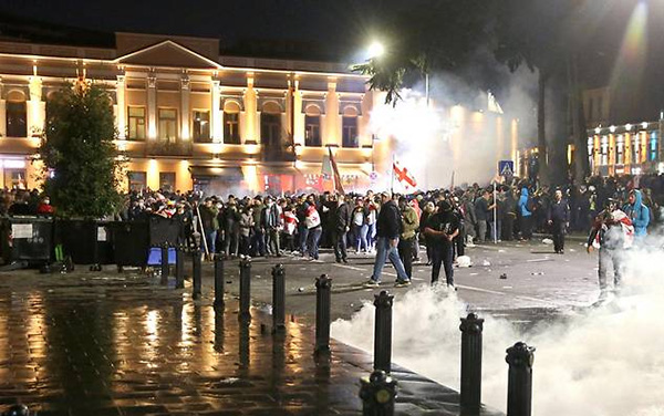 Szombaton több tízezer ember vonult utcára. Tbilisziben egy csoport Európa-párti tüntető megpróbált betörni az elnöki palotába. A rendőrség könnygázt és vízágyúkat vetett be. sgy.