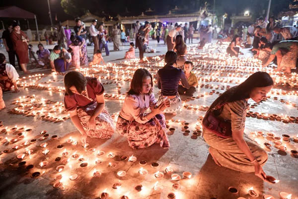 A Thadingyut Fesztivál, más néven a Fények Ünnepe, egy buddhista gyökerekkel rendelkező nemzeti ünnep, amelyet minden évben októberben tartanak. Ez a fesztivál éjszaka kerül megrendezésre, amikor több ezer lámpát és gyertyát gyújtanak meg épületeken és az utcákon, hogy megünnepeljék Buddha mennyből való visszatérését. Idén az esemény egyben a katonai junta politikája elleni tiltakozás is volt.