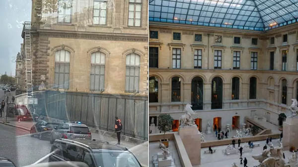 Az X platformon (korábban Twitter) terjedő vírusbejegyzés szerint egy négyfős csapat vasárnap reggel betört a múzeumba egy rakodósiló segítségével. Ugyanezen forrás szerint a tolvajok láncfűrészekkel kivágtak egy ablakot, betörtek két vitrint, amelyek napóleoni és uralkodói ékszereket tartalmaztak, majd T-Max robogókon elmenekültek a Quai de la Seine felé.