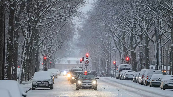 Hétfőn a járatok mintegy 15 százalékát törölték a párizsi Charles de Gaulle és Orly repülőtereken. Az esti csúcsforgalomban közel 1000 kilométer hosszú forgalmi dugók alakultak ki Párizs környékén. Eközben a szánkózók és síelők élvezték a havat a párizsi Montmartre-on.