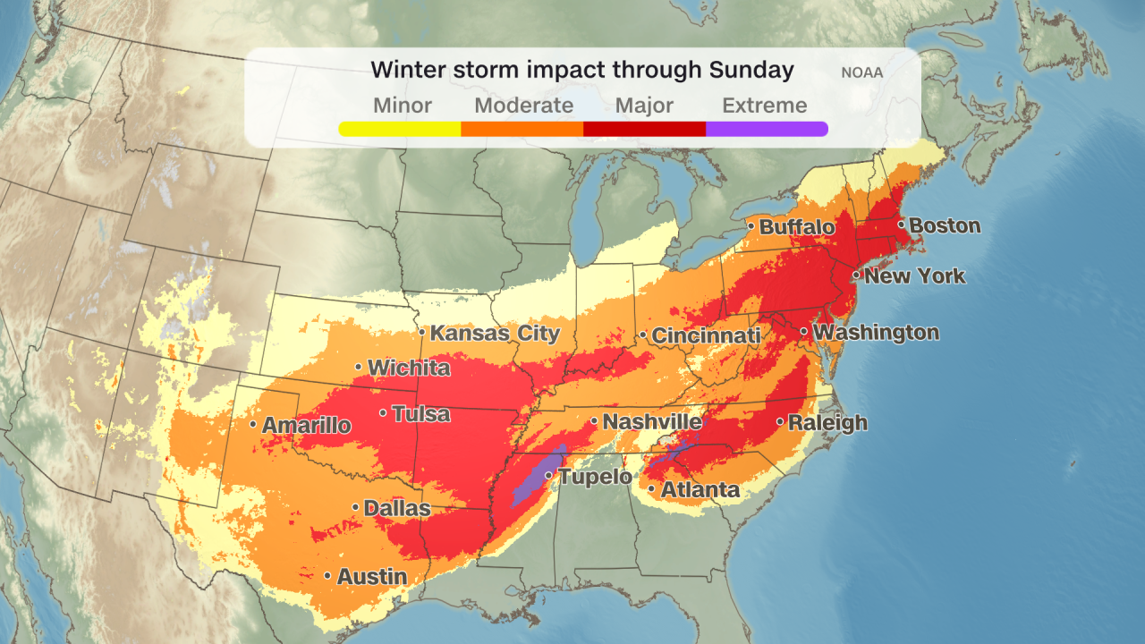 Bár Tennessee állam északi részein is havazásra számítanak, a középső és déli területeken jég és ónos eső várható. A jég viszont veszélyes lehet az elektromos hálózatra, mivel letöri a fák ágait, és megnehezíti az utak tisztítását.