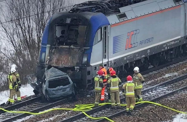 A lengyel PolsatNews című lap szerint a mai balesetet egy vasúti átjáróban lerobbant Ford Focus okozta, akinek a sofőrje túl későn próbálta letolni a járművet a sínekről.