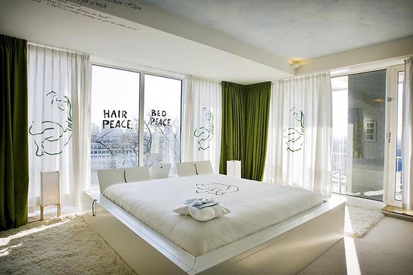 Az ifjú pár 1969. március 24-én érkezett Amszterdamba egy krémszínű Rolls-Royce-szal Párizsból, és lefeküdtek. A Beatles-sztár és a japán konceptuális művész hét napig szállt meg az akkor még viszonylag új szálloda 902-es lakosztályában. És meghívták a világ sajtóját. Minden nap tucatnyi újságíró ült a világ minden tájáról a híres pár ágyának szélén. Rajongók is jöttek, autogramokat kértek és ajándékokat hoztak.