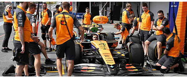 De csapattársa, aki vezeti a világbajnokságot, szintén hibázott, és hozzáért a korláthoz. Az ausztrálnak hosszabb időre ki kellett hagynia az első edzést a motorjával fellépő probléma miatt. Végül a páros nem végzett feljebb a tizenkettedik (Piastri) és a tizedik (Norris) helynél. A második edzés vége után a versenyigazgatóság vizsgálatot indított Piastri ellen a sárga zászló figyelmen kívül hagyása miatt. A világbajnokság élén álló versenyző figyelmeztetést kapott a szabálytalanságért. sgy.