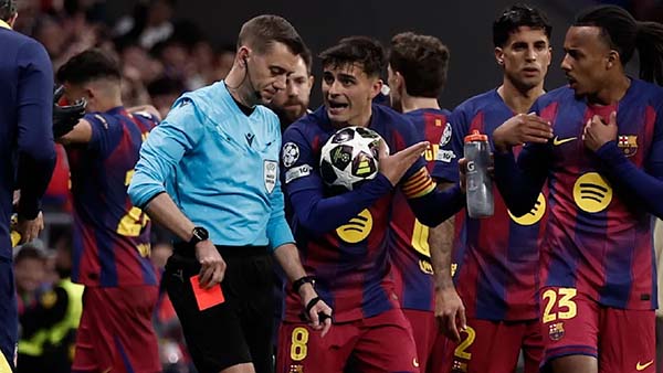 A Barça és az Atlético közötti mérkőzéseken nyújtott játékvezetői teljesítmény már az első mérkőzésen is jelentős vitát váltott ki. Hansi Flick, a Barça edzője különösen a német VAR-ügynököt, Christian Dingertet vette célba , nyilvánosan kritizálva őt. A vita középpontjában Cubarsi védő kiállítása és Pubill, az Atlético védőjének kirúgása állt. Ezúttal ismét a VAR játszott kulcsfontosságú szerepet. A Barça 3-1-es gólját les miatt érvénytelenítették. Röviddel ezután Eric Garciát kiállították profi szabálytalanság miatt. A védő dühösen elszakította a mezét az öltözőbe menet. Mindkét VAR-döntés helyes volt.
